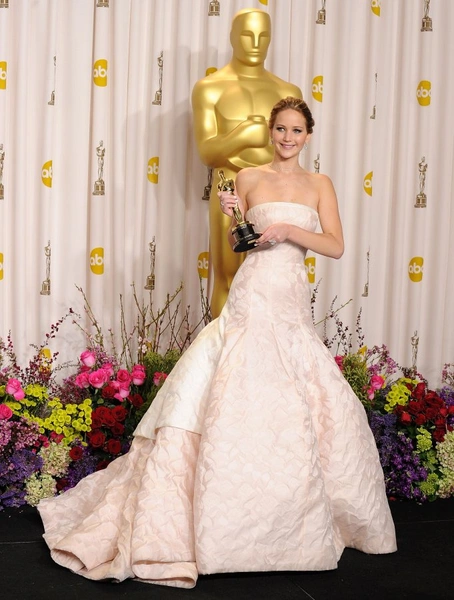 Тема платьев для «Оскара» на этом не закончилась. После премии Дженнифер Лоуренс (Jennifer Lawrence) пришлось оправдываться за свое падение. Актриса споткнулась на лестнице, ведущей к сцене, и объяснила это кроем наряда. «Как это "что случилось"? Вы только посмотрите на мое платье!» – сказала обладательница «Оскара» за лучшую женскую роль. Кстати, Дженнифер Лоуренс в своем падении была не одинока. Споткнулась и Дженнифер Гарнер, выбравшая длинное платье сложного кроя.