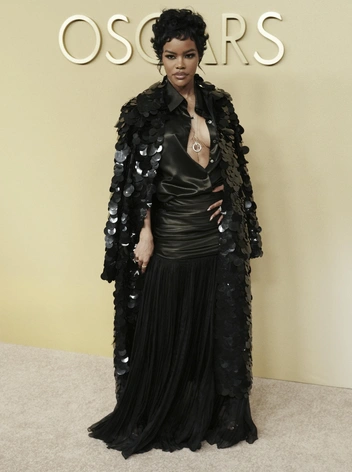 По традиции все выходили на красную дорожку в нарядах избранных брендов. Дресс-код ужина отличается от самого «Оскара», поэтому на нем едва ли увидишь вечерние платья. Тем не менее гостям все равно было чем удивить. Например, Тейяна Тейлор, которая в последнее время все больше укрепляет свой статус модной иконы, выбрала эффектный образ вьетнамского бренда Cong Tri, сплошь усыпанный крупными черными пайетками (читайте также: Как Тейяна Тейлор снова сделала открытый живот фэшн-заявлением: 30 лучших ее образов).