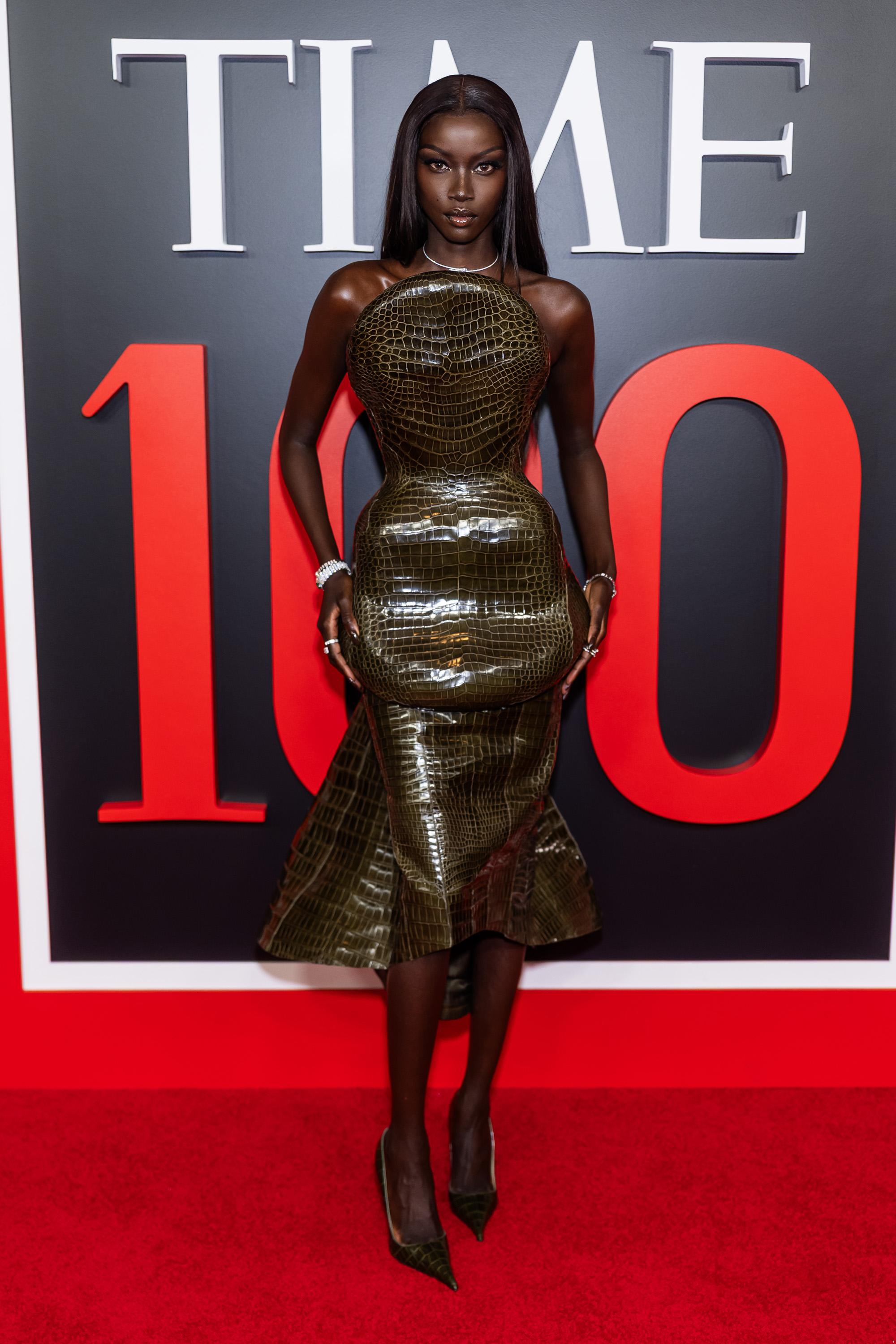 В свою очередь, модель Анок Яй, которая в этом году попала в TIME100 в категории «Титаны», вышла на фото-колл в экзотическом Ashi Studio. Сложное корсетное платье из натуральной крокодиловой кожи было представлено на кутюрном показе весна-лето 2026.