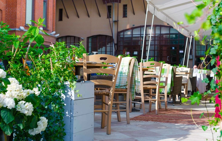 Несмотря на свое расположение на оживленной улице в районе Трехгорной мануфактуры, веранда будет очень уютной, скрывающей от городской суеты и передающей атмосферу Италии, что невольно забываешь о будничной суете.