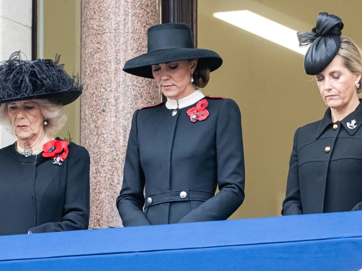 Елизавета II должна была занять центральное место на балконе наравне со своими ближайшими родственницами, однако в конце концов монарх не присутствовала на церемонии памяти. По данным Reuters, ее место заняла герцогиня Кэтрин, по бокам от которой стояли герцогиня Камилла и графиня Софи. Обычно Ее Величество занимала место между двумя будущими консортами — герцогинями Корнуольской и Кембриджской. В Insider написали, что королева отказалась от участия в мероприятии за два часа до его начала, сославшись на боль в спине.