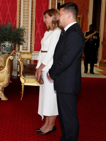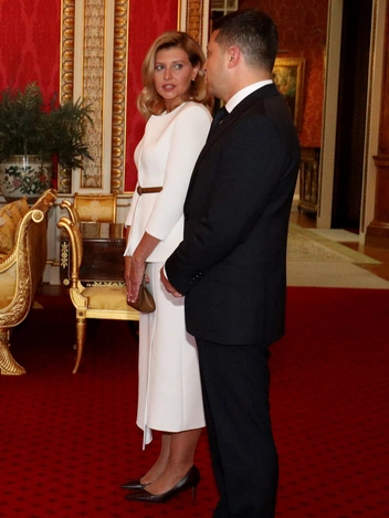 На 42-летней госпоже Зеленской был белоснежный костюм из лаконичного жакета и юбки-миди, к которому были подобраны изящные кожаные аксессуары в коричневой гамме: замечательный небольшой клатч, тонкий ремень и остроносые туфли на среднем каблуке. Ни на ком из четверых участников встречи не было масок, однако пары соблюдали социальную дистанцию, поэтому от рукопожатий было решено отказаться. С момента ослабления ограничений в Великобритании Уильям и Кэтрин уже успели принять участие в ряде мероприятий, включая вчерашний визит Кейт в Университет Дерби, однако это первая аудиенция Кембриджских с марта этого года.