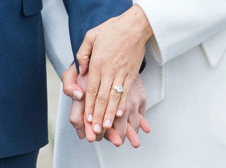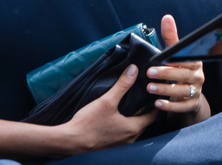 В свое время над дизайном помолвочного кольца Меган — украшением из желтого золота, крупного бриллианта из Ботсваны и двух бриллиантов поменьше из коллекции принцессы Дианы — поработал лично принц Гарри. Но судя по фотографиям с парада Trooping the Colour, сейчас дизайн украшения изменился (читайте также: «Какие украшения из королевской коллекции могут заимствовать представительницы БКС»).