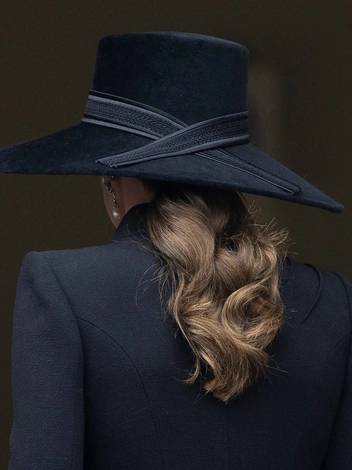 Пальто Catherine Walker, шляпа Philip Treacy и перчатки Cornelia James составили строгий траурный комплект, который понравился поклонникам Ее Высочества. «Принцесса Кэтрин выглядит безукоризненно в платье-пальто от Кэтрин Уокер, серьгах с бриллиантами и жемчугом и шляпе Филиппа Трейси, но единственной особенностью ее наряда, которая была абсолютно впечатляющей, было то, что у нее была новая прическа. Не просто какая-нибудь старая прическа. Особенная прическа», — настаивала Холдер. Раньше Кейт часто прибегала к сложному плетению на особенно торжественных официальных мероприятиях, требовавших от нее наличия шляпки (читайте также: Всегда безупречна: 10 лучших причесок герцогини Кейт на любой случай). Однако в этот раз обошлось без сложных форм и сильной фиксации.