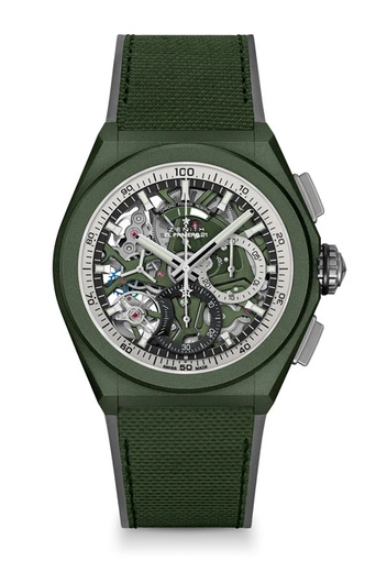 Впервые в истории Zenith мануфактура выпустила хронограф DEFY 21 Urban Jungle со счетчиком 1/100 секунды в керамическом корпусе цвета хаки. Полностью матовый корпус часов Urban Jungle из керамики в интенсивном оттенке хаки устойчив к появлению царапин. Эти часы не бросаются в глаза с первого взгляда, но при этом всегда радуют глаз своего владельца.