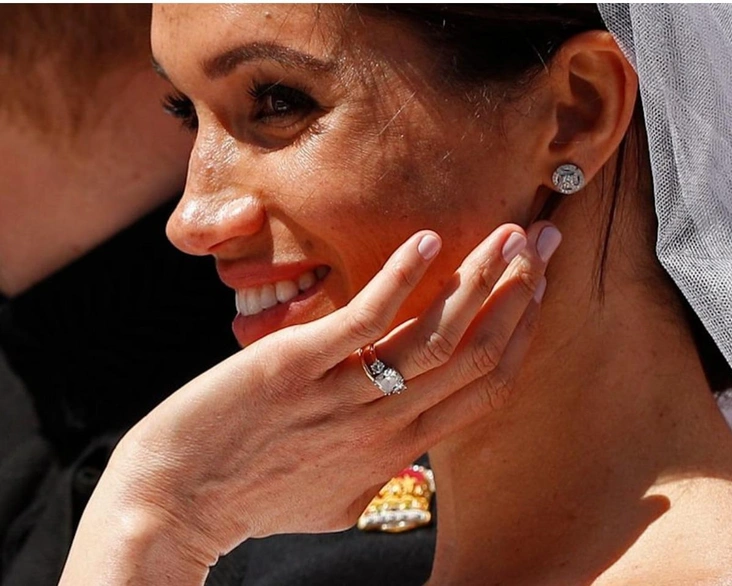Когда принц Гарри сделал Меган предложение в 2017 году, он выбрал изготовленное на заказ помолвочное кольцо с тремя камнями: бриллиантом огранки «кушон» весом 3 карата и двумя бриллиантами поменьше из ювелирной коллекции принцессы Дианы.