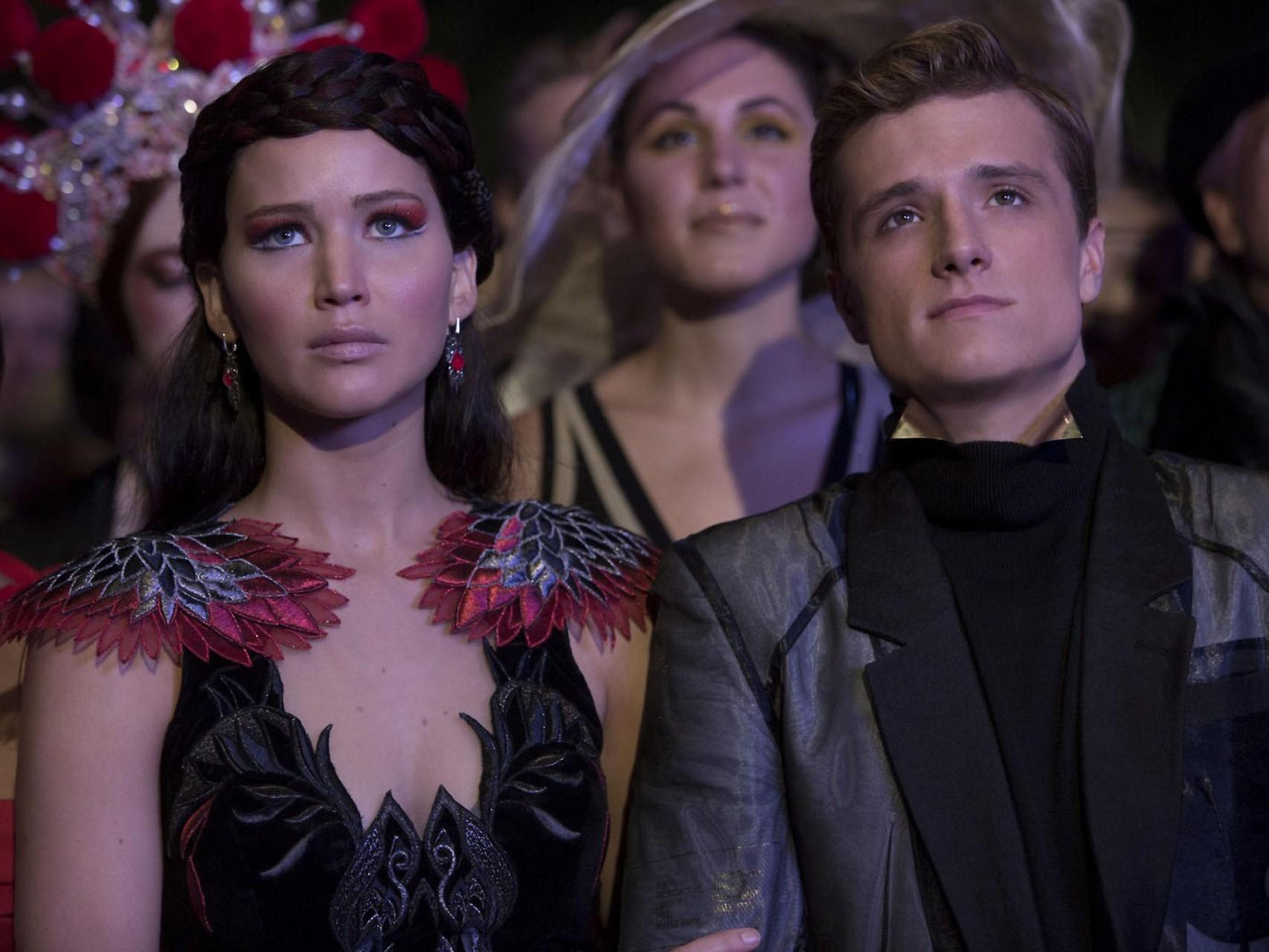 Дженнифер Лоуренс и Джош Хатчерсон в фильме «Голодные игры: И вспыхнет пламя» (2013).