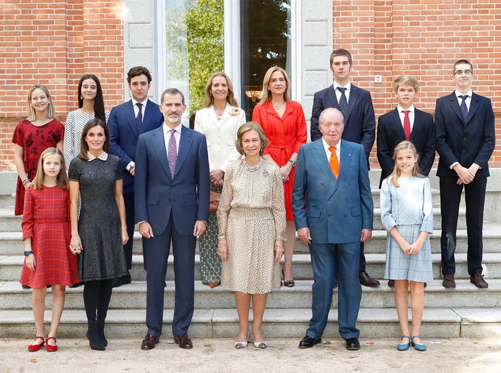 В день рождения Доньи Софии во дворце Сарсуэла собрались все три поколения королевской семьи Бурбонов. На семейном снимке именинница запечатлена со стоящими рядом с ней сыном, нынешним королем Испании Филиппом VI, и супругом, бывшим королем Хуаном Карлосом I. Слева от Филиппа расположились королева Летиция с принцессой Леонор, рядом с Хуаном Карлосом стоит инфанта София. Но куда интереснее рассматривать второй ряд, в котором стоят дочери Софии – инфанты Елена де Бурбон и Кристина Де Бурбон со своими детьми.