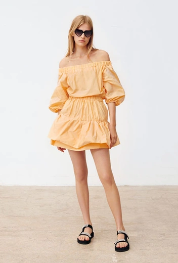 В новом сезоне Maje предлагает перенестись во Флориду – в Майами-Бич, Эверглейдс, Орландо и Ки-Уэст. Шумные вечеринки у бассейна, пальмы, жара и клубы – вот главное вдохновение для стильной, легкой и непринужденной коллекции.