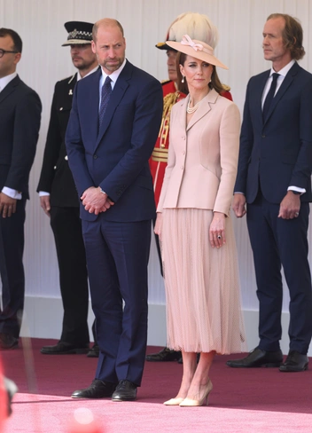 Для столь важного события Кейт, как и всегда, выбрала стильный и в меру сдержанный образ. Принцесса надела костюм бренда Dior — так она отдала дань уважения своим гостям. К слову, это был первый раз, когда она предстала в одежде французского модного Дома.