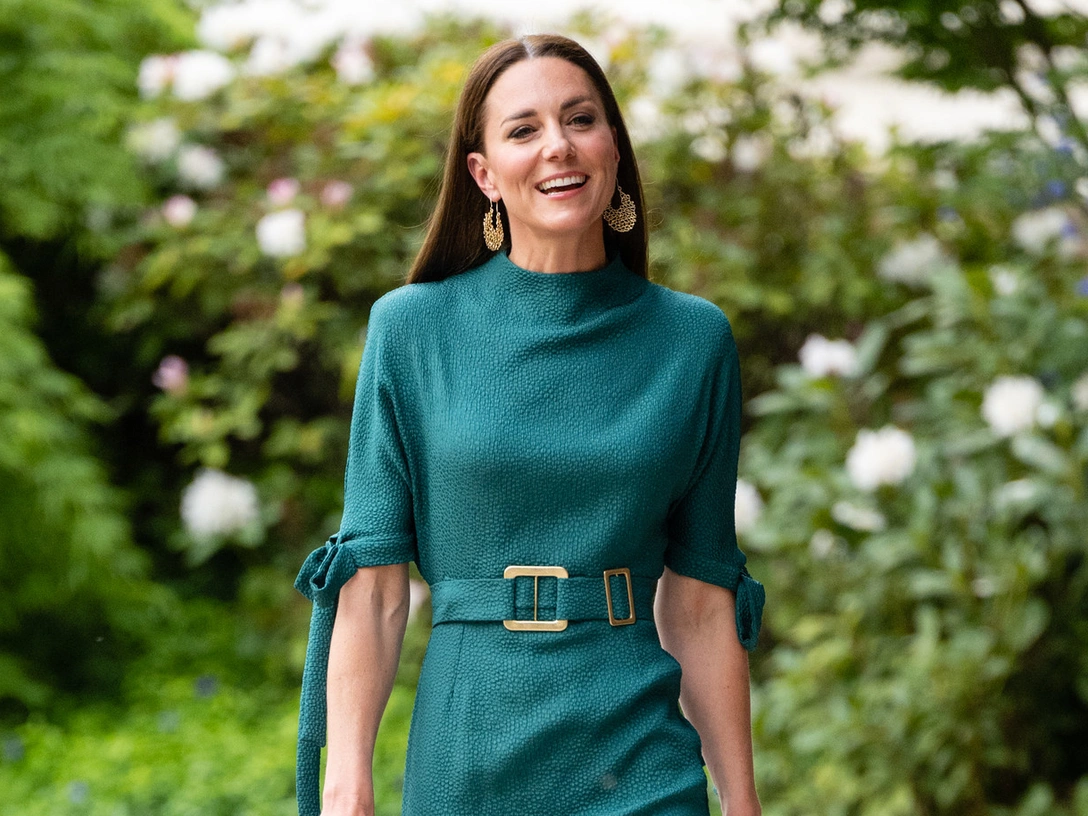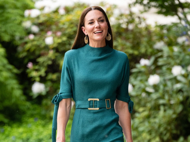 Для эффектного выхода Кейт выбрала изумрудно-зеленое платье с поясом от британо-канадского дизайнера Эделины Ли стоимостью 981 доллар. Она дополнила платье аксессуарами, в том числе золотыми серьгами Nadine Irena, которые она носила во время карибского тура этой весной, а также зелеными замшевыми туфлями Emmy London (420 долларов) и стильным клатчем (375 долларов).