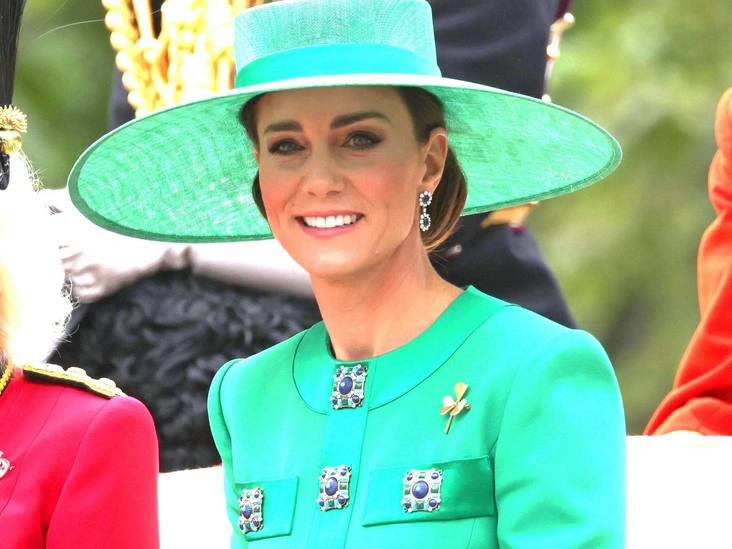 Оттенок зеленого отсылает нас и к новому статусу Кэтрин, поскольку это первый парад не только для Карла в качестве короля, но и для Кейт в качестве принцессы Уэльса. И так она, по всей видимости, решила подчеркнуть любовь к Уэльсу, поскольку флаг этой страны содержит зеленый цвет. Также, во время своего первого парада в статусе принцессы Уэльской, поступила и Диана, надев зеленый цвет.