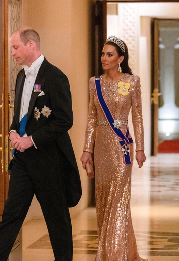Это, а также выбор Кэтрин в сторону серег с сапфирами, которые принадлежали ее свекрови, создает третью отсылку наряда Кейт, которая заключается в почтении к принцессе Диане. Отметим, на свадьбе иорданского принца Хуссейна Кэтрин также сделала выбор в пользу тиары «Узелки любви», ранее принадлежавшей Диане. И это мероприятие было не первым, на котором Уэльская предпочла надеть тиару свекрови, которой Диана также была преданна.