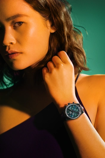 И, наконец, ключевая особенность, которая отличает эту модель: потрясающий бирюзовый оттенок циферблата с эффектом Sunray. Редкий для часов TAG Heuer цвет представляет собой изысканное сочетание синего и зеленого, придающее свежее творческое прочтение и слегка уловимую дерзость. На колонном колесе внутреннего механизма присутствуют штрихи бирюзового цвета, а также надписи «Calibre Heuer 02» и «Swiss Made» на роторе, которые видны сквозь заднюю крышку корпуса из сапфирового стекла.
