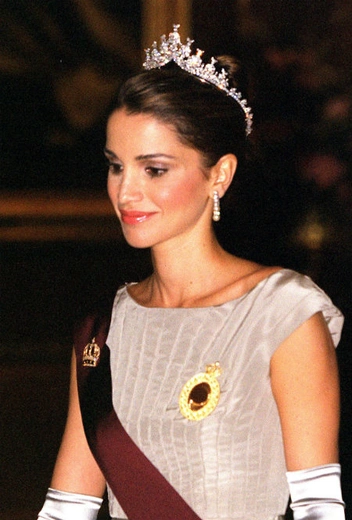 Коллекция тиар Рании хоть и скромна (в сравнении с представителями европейских монарших домов), но эффектна. Критики выделяют тиару-браслет Boucheron простой но изящной формы — бриллиантовые нити образуют затейливую форму, закручивающуюся в спираль на конце. Ее изготовили специально для королевы-консорта, которая позже появилась в украшении на 10-летии коронации мужа в 2009, свадьбе кронпринцессы Виктории в 2010 и во время их с Абдаллой визита в Бельгию в 2016 году.