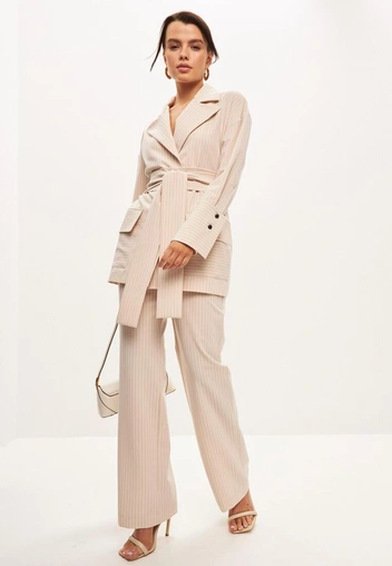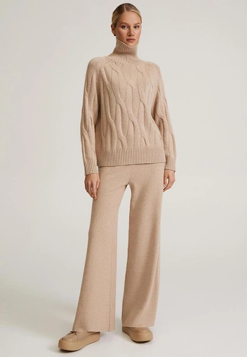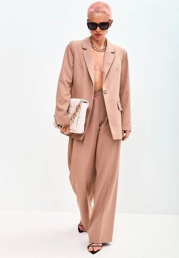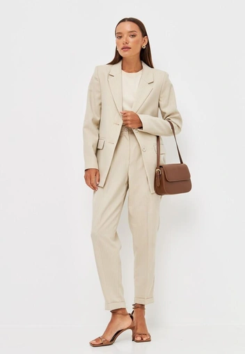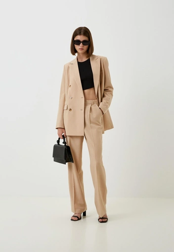Если хотите составить монохромный лук — не обязательно использовать одинаковые цвета. Попробуйте как Иванка — она подобрала оттенки из разных палитр, которые, тем не менее, прекрасно сочетаются между собой. Девушка затемняла образ сверху-вниз: сначала лимонный свитер (который освежил костюм), затем классический беж в пиджаке и брюках, и после темно-коричневые сапоги. Этим приемом Иванка разбавила образ, который был бы скучным только в одном оттенке бежевого.