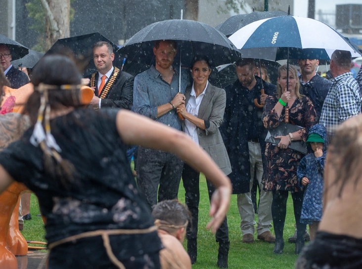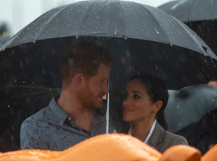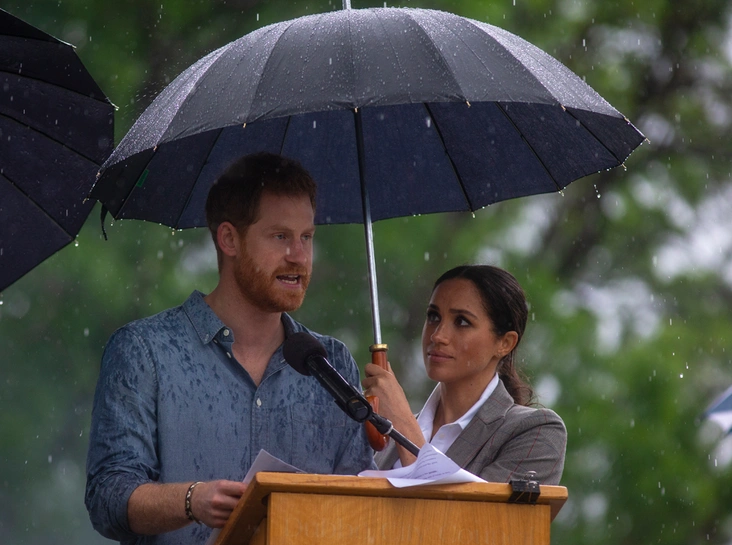 В день, когда Гарри и Меган прилетели в Даббо, в городе, все еще борющимся с последствиями засухи, пошел дождь – так что выступать герцогу пришлось под сильным ливнем. Вернее, пришлось бы, если бы за ним вовремя не подоспела жена с зонтом, которая стойко продержала его над супругом, не сводя с Гарри влюбленных глаз.