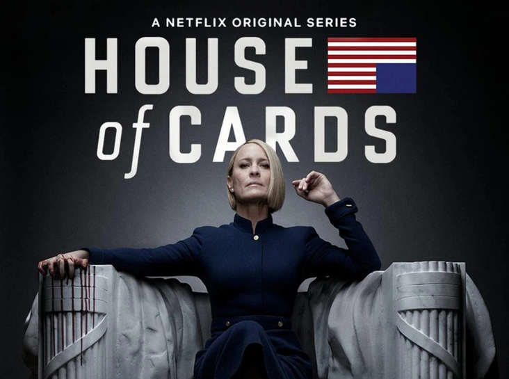 Шлем из белокурых волос, надменный взгляд, скрещенные ноги и окровавленные руки ─ в таком образе предстала исполнительница роли главной героини «Карточного домика» Робин Райт на новом постере. Ее кресло вызывает ассоциации с троном, а вскинутой голове и надменному взгляду могут позавидовать члены королевских семей. Теперь Клэр ─ олицетворение силы и беспощадности, ведь миссис Андервуд ─ настоящая звезда шоу.