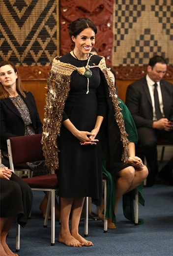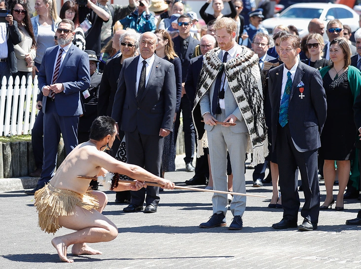 В первую очередь, герцог и герцогиня посетили площадь Te Papaiouru Marae – место официальных национальных церемоний, где Сассекских поприветствовали по всем правилам маори. Пару облачили в традиционные накидки, исполнили ритуальный танец (принц Гарри снова принял в нем посильное участие). Затем в закрытой части Te Papaiouru прошла еще одна церемония, на которой принц выступил с речью.