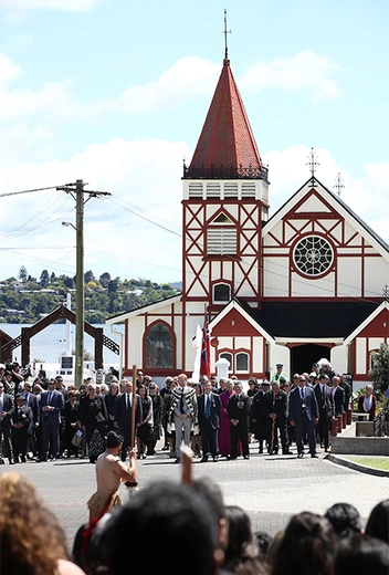 Финальный день королевского тура прошел очень колоритно. Пара отправилась в город Роторуа, расположенный на одноименном озере, известном своей геотермальной активностью. Город изначально строился как туристический центр и стал таковым с успехом. Кстати, находится Роторуа на острове Северный, но точно также как октябрь в Новой Зеландии – весна, так и самая северная оконечность страны – самая теплая. И, судя по всему, как минимум, с солнцем королевской паре сегодня очень повезло.