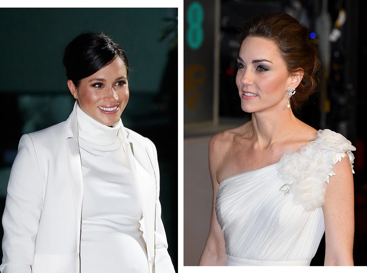 И пусть образ Меган соответствует совершенно другому случаю и дресс-коду: учитывая интерес герцогини Сассекской к миру шоу-бизнеса и моды, она совершенно точно знала, в чем была Кейт два дня назад. А так как супруга принца Гарри, судя по всему, еще и в курсе приписываемой ей вражды с будущей королевой, выбор белого тоже можно считать символичным. Так герцогиня Сассекская показывает, что и она нисколько не страшится сравнений с женой брата мужа. И она, и Кейт – уверенные в себе женщины, которым нечего делить. Даже если дело касается банального цвета наряда на мероприятие.