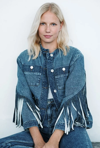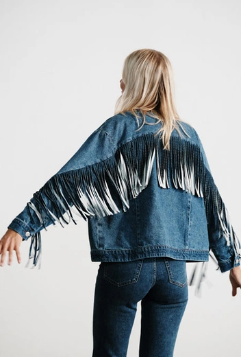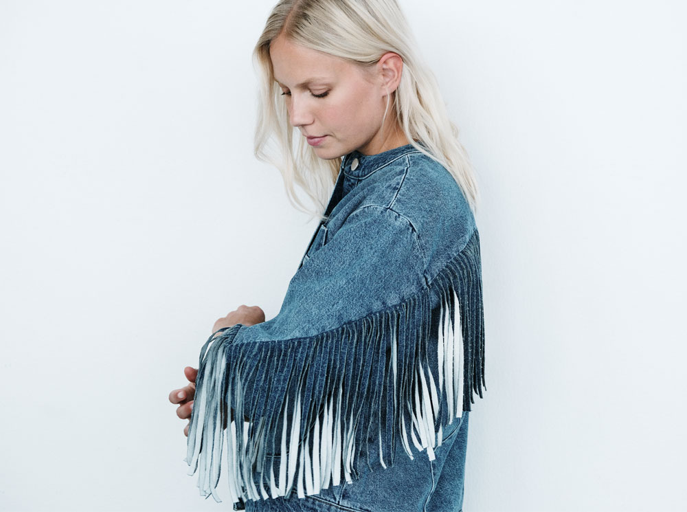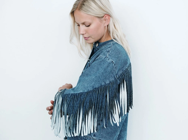 Образ, полностью состоящий из джинсовых вещей – уже отличная аллюзия на актуальный ковбойский стиль. Однако самые интересные образы в антураже Дикого Запада, конечно, получатся, если к джинсам добавить куртку с бахромой – такую можно носить на голое тело или в сочетании с практичной футболкой или топом – образ в любом случае получится запоминающимся (читайте также: Тренды Дикого Запада: как носить ковбойский стиль повседневно).