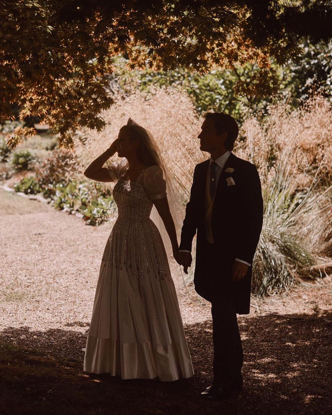 Несмотря на то, что принцесса Беатрис и итальянский аристократ Эдоардо Мапелли-Моцци провели свою свадьбу в период пандемии, влюбленным удалось выдержать ее во вполне традиционном ключе. Невесту и жениха окружали их самые близкие родственники, а Беа шла к алтарю не только в тиаре из королевской сокровищницы, но и в белоснежном платье своей бабушки (читайте также: Из торжественного наряда в подвенечный: полувековая история свадебного платья Беатрис).