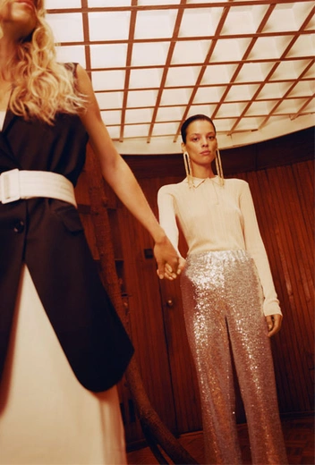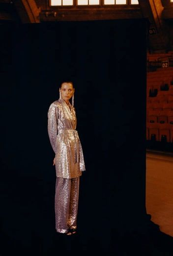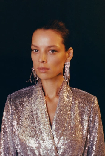 Костюм, полностью усыпанный переливающимися пайетками — самый безупречный аутфит для важного вечера. Но можно ли его подстроить под гардероб на каждый день? На самом деле, возможно. Самое важное правило — комбинировать такие яркие и акцентные вещи со сдержанными и лаконичными предметами гардероба. Например, сияющий жакет на запах можно дополнить базовыми джинсами и грубыми ботинками, а переливающиеся вечерние брюки — практичным трикотажным лонгсливом.