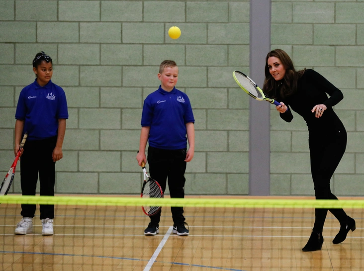 Спортивные мастер-классы уже стали традицией для представителей королевской семьи при посещении подобных локаций. Уильям и Кейт также не смогли отказать себе и поклонникам в удовольствии немного размяться: Кейт взяла в руки теннисную ракетку, а Уилс поупражнялся в метании дротиков.