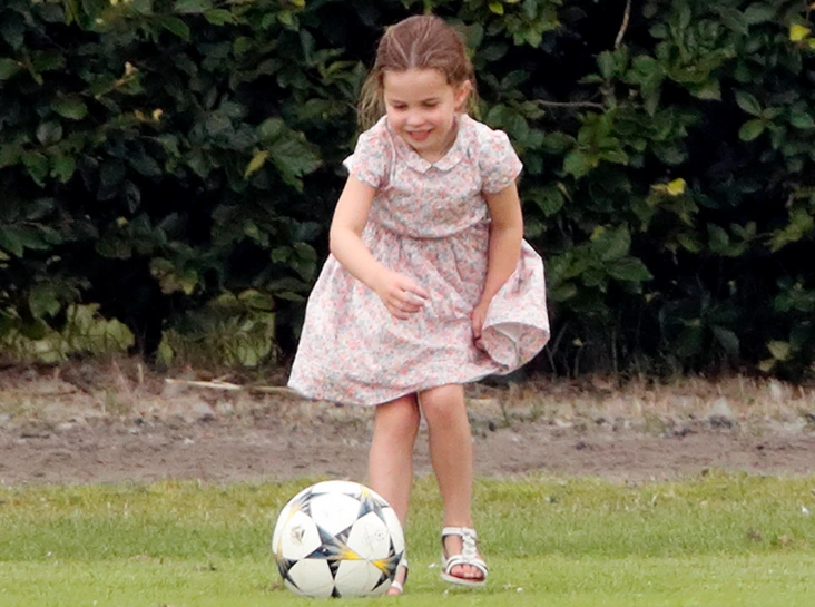 Летом, когда она присутствовала со своими родителями – герцогом и герцогиней Кембриджскими – на благотворительном матче по поло, принцесса Шарлотта попала в объективы фотокамер, пока играла в футбол со своим братом принцем Джорджем. Кадры с непосредственной Шарлоттой, весело гоняющей мяч по полю, буквально стали вирусными и снова очаровали всех британцев.