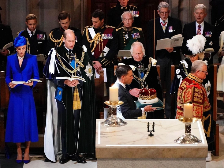 Двери бордового автомобиля Rolls-Royce открылись, и Карл III вместе с Камиллой направились в собор Святого Джайлса под крики протестующих: «Не мой король, не мой король!» Стоит отметить, что в отличие от официальной коронации, в Эдинбурге демонстрации не подавляли, а лозунги на плакатах не прикрывали щитами, дав возможность горожанам высказаться.