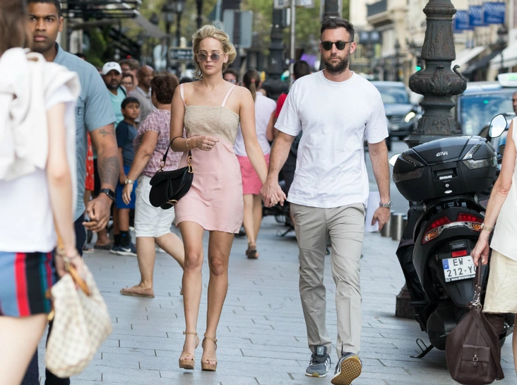По данным издания People, невеста шла к алтарю в платье от Dior. Учитывая многолетнее сотрудничество Лоуренс с французским модным домом, выбор звезды никого не удивил.