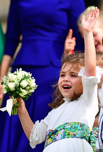 Ее Величество Елизавету II сложно не узнать (доказательства: «Как отличить Королеву: каблук 5 см, сумка Launer, яркое пальто и никаких брюк»). Сегодня британскую Королеву по праву считают одной из самых знаменитых женщин в мире, но, как известно, у маленьких детей всегда на все свой взгляд. Шестилетняя дочь певца Робби Уильямса, Теодора Роуз, была в тот день одной из девочек-цветочниц, сопровождавших принцессу Евгению. В компании малышей Тедди была единственной девочкой не голубых кровей, для которой, разумеется, весь пафос типичной британской королевской свадьбы был, мягко скажем, в новинку.