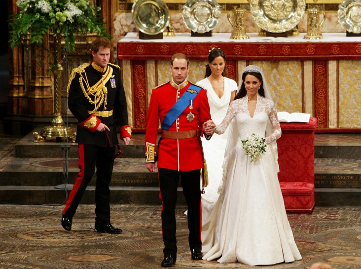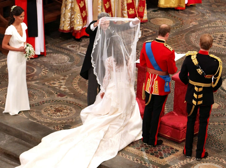 Разумеется, шафером был выбран младший брат герцога Кембриджского, принц Гарри. В день свадьбы жених был одет в униформу ирландского гвардейского офицера, а Гарри предстал в королевской офицерской форме. Вместе с белоснежным платьем из тончайшего кружева, разработанного британским модным домом Alexander McQueen под руководством Сары Бертон, композиция производила особенный эффект. Впрочем, известно, что подвенечный наряд все-таки доставил невесте сильные переживания (читайте также: Трагедия для невесты: почему герцогиня Кейт плакала из-за своего свадебного платья).
