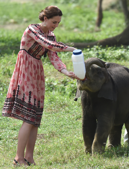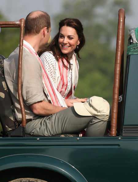 Четвертый день визита в Индию Кейт Миддлтон и принц Уильям провели в уникальном природном парке диких животных – Национальном парке Казиранга в индийском штате Ассам. Программа у королевской пары была насыщенная. Они проехались по территории парка на открытых внедорожниках, повстречали слоненка, подождали, пока неповоротливый носорог перейдет дорогу. Затем пара пообщалась с жителями деревни, которая расположена прямо на территории парка и отправилась кормить детенышей слонов и носорогов.