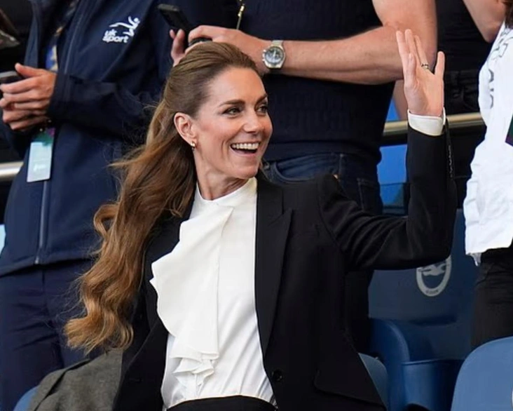 Принцесса Уэльская вновь радует публику своим появлением. На этот раз Кейт посетила женский чемпионат мира по регби на стадионе «Брайтон и Хоув Альбион» в качестве покровителя Союза регби. Уильям тоже не отстает от обязанностей — он пришел поддержать команду Уэльса в тот же день.