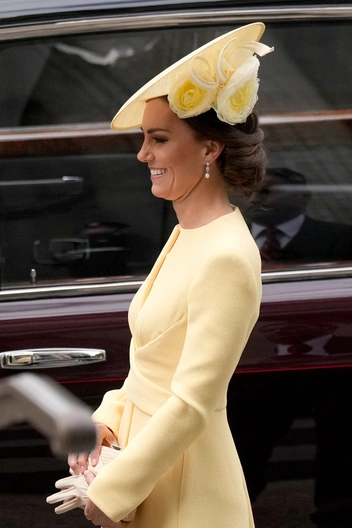 Сама Кейт Миддлтон, казалась, совсем забыла о том, что недавно жена принца Гарри говорила о ней в интервью. Сияющая герцогиня выбрала ярко-желтый наряд из платья длины миди с эффектной деталью на талии от бренда Emilia Wickstead, а также шляпу в тон от Philip Treacy. Она дополнила образ телесными туфлями-лодочками и едва заметными жемчужными серьгами (читайте также: Драгоценности герцогини: любимые ювелирные бренды Кейт Миддлтон).