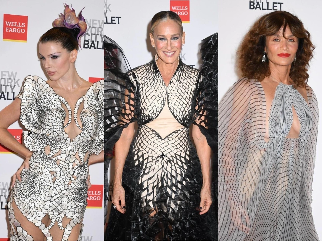 Сара Джессика Паркер блистала в платье из последней коллекции haute couture. Его украшали два объемных «крыла», выполненных из тончайшей органзы. В выборе бренда к ней также присоединились Джулия Фокс, дополнившая образ необычной прической, Николь Ари Паркер, сделавшая ставку на яркий красный цвет, и Хелена Кристенсен — она предпочла летящий силуэт.