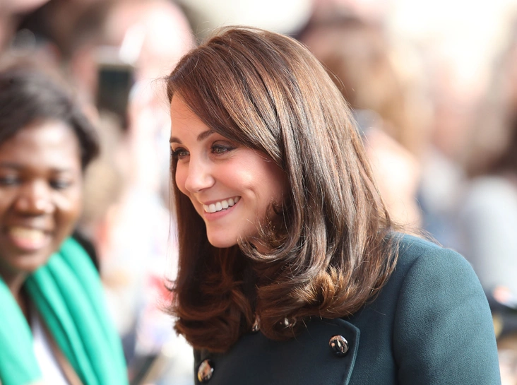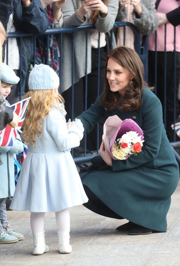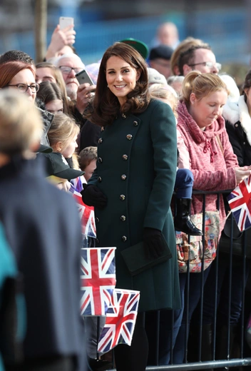 Для визита в этот туманный город на северо-востоке Англии Кейт облачилась в темно-зеленое двубортное пальто от Dolce & Gabbana, дополнив его плотными колготками, парой черных замшевых туфель, перчатками и клатчем. Это пальто очень мягко облегало растущий живот герцогини: Кэтрин, как известно, беременна третьим ребенком, а роды ожидаются уже в апреле.