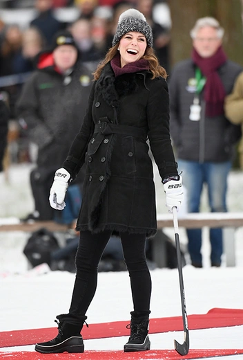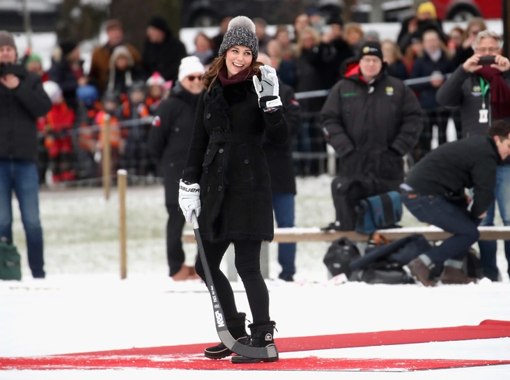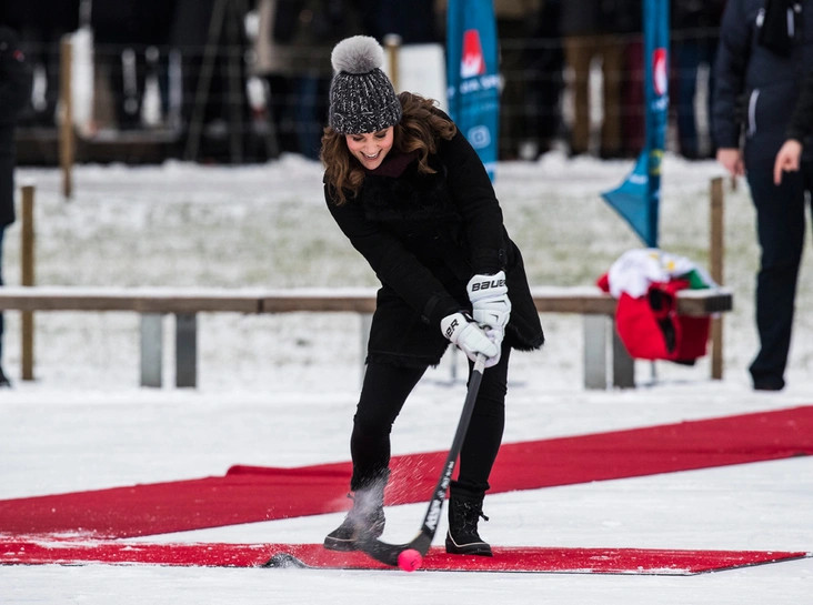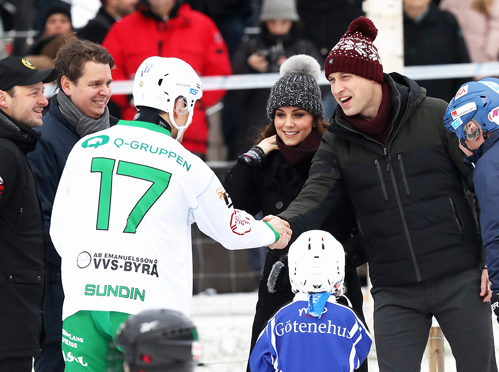Сразу по приезде Кейт Миддлтон и принц Уильям отправились в стокгольмский Vasaparken – ледовую арену под открытым небом, где сегодня состоялся хоккейный матч. Правда, хоккей был не обычный, а с мячом – эта разновидность зимнего вида спорта очень популярна в Швеции. После матча герцог и герцогиня встретились с игроками, чтобы лучше узнать о бенди – именно так его там и называют.