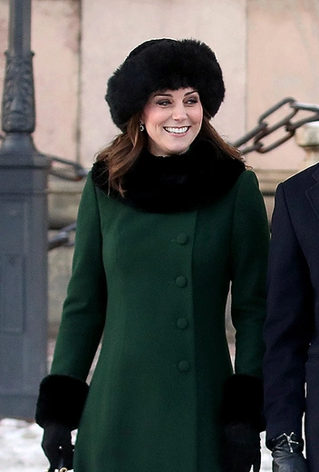 После чинного приема высокие гости отправились в пешую прогулку от дворца до Нобелевского музея с остановкой на Стурторьет – старейшей площади в центре Стокгольма. Кейт надела темно-зеленое (видимо, в тон платью под него) пальто с меховой оторочкой от Catherine Walker, захватив небольшую сумку от Mulberry. Виктория выбрала светло-зеленый длинный бушлат и замшевые ботильоны. Отметим, что погода в шведской столице сегодня необычайно благоволит таким променадам – всего -3 градуса по Цельсию.