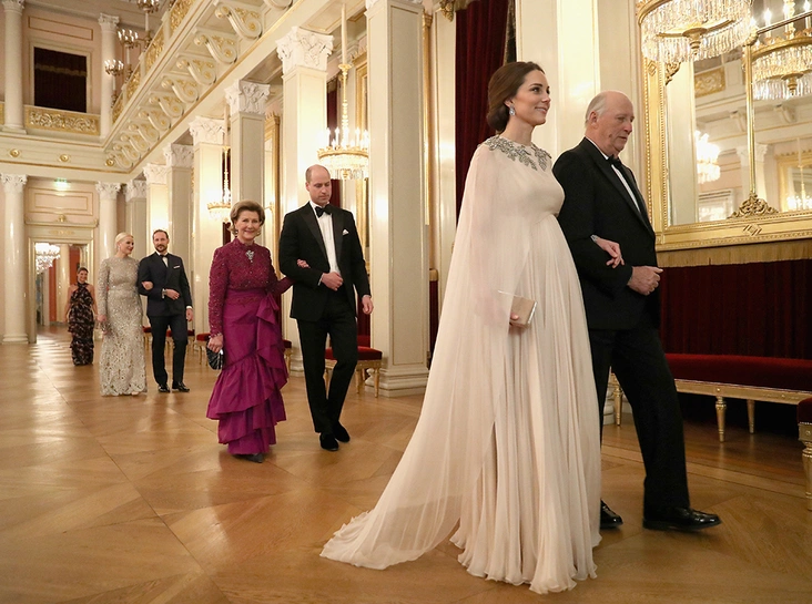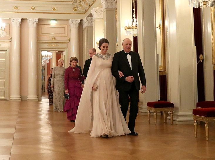 Завершением вечера стал гала-ужин, организованный норвежским королем Харальдом V и его женой Соней, в мае прошлого года синхронно и очень весело отметившие свой 80-й юбилей. Кстати говоря, именно по приглашению норвежского монарха Кембриджские остановились в Королевском дворце Осло, поэтому после ужина они просто отправятся в собственные покои.