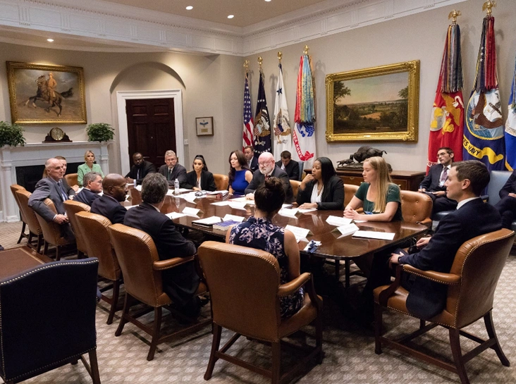 В Белом доме Кардашьян провела несколько часов. Вместе с Иванкой Трамп и Джаредом Кушнером и другие представителями президентской Администрации звезда приняла участие в обсуждении реформы системы уголовного правосудия. Как уточняется, главной темой круглого стола был процесс помилования и способы его совершенствования «для обеспечения рассмотрения дел, заслуживающих справедливого пересмотра».