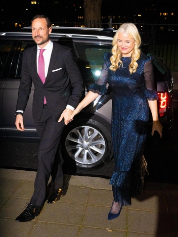 В среду 1 марта Метте-Марит присоединилась к своему мужу, наследному принцу Хокону, на приеме «Ночь Норвегии» в Линдли-холле в Вестминстере. Королевская особа привлекла к себе всеобщее внимание, появившись в темно-синем платье марки The Vampires Wife, которое она дополнила лаконичными черными лодочками Manolo Blahnik и небольшим клатчем VBH. Завершили образ Метте-Марит крупные локоны, которые в последнее время часто демонстрирует и Кэтрин.