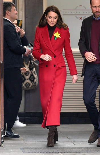 Для мероприятия Кейт выбрала то же красное пальто Alexander McQueen, в котором проводила концерт «Вместе на Рождество» в 2024 году. На него была прикреплена брошь с нарциссом — национальным цветком Уэльса. Также она надела серьги от небольшого местного бренда Spells of Love (читайте также: Ювелирная битва: как Меган и Кейт носят украшения Дианы (и кому они идут больше)).