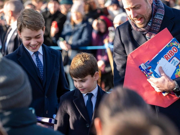 Семейство Уэльских, как и ожидалось, прибыло на праздник в полном составе. А их фэмили-дрессинг вновь оказался двухчастным: пока Кейт и Шарлотта блистали в коричневых оттенках, мужская половина семьи — принц Уильям с сыновьями Джорджем и Луи — придерживались темно-синего. У мальчиков и вовсе были одинаковые костюмы: укороченные пальто, белоснежные рубашки, классические брюки, кожаные туфли и контрастные галстуки.