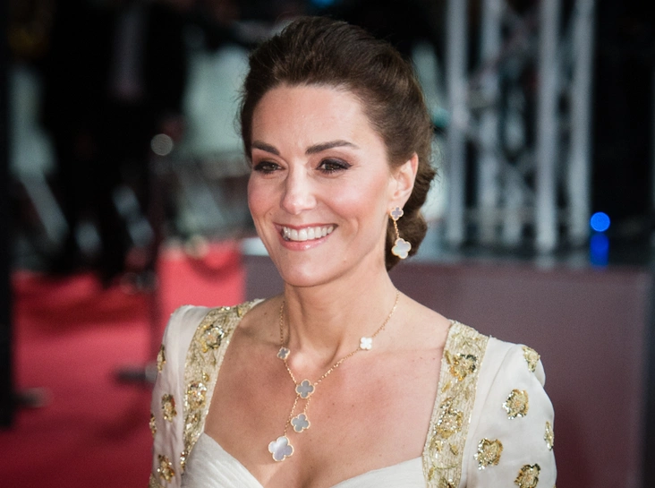 Недавно герцог и герцогиня Кембриджские стали почетными гостями премии BAFTA-2020 (читайте также: BAFTA-2020: самые стильные звезды на ковровой дорожке церемонии). И, конечно, все взгляды на красной дорожке были прикованы к супруге будущего короля. Кейт серьезно подготовилась к вечеру – Ее Высочество надела белое с золотой вышивкой платье своего любимого бренда Alexander McQueen и дополнила наряд серьгами и колье Van Cleef & Arpels с перламутром.