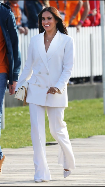 Меган появилась на приеме в Нидерландах в шикарном белом костюме от Valentino с широкими брюками и блейзером оверсайз. Поклонники разделились на два лагеря: кому-то категорически не понравился новый образ герцогини, а кто-то восторгался им и тем, как Сассекская отлично выглядит.