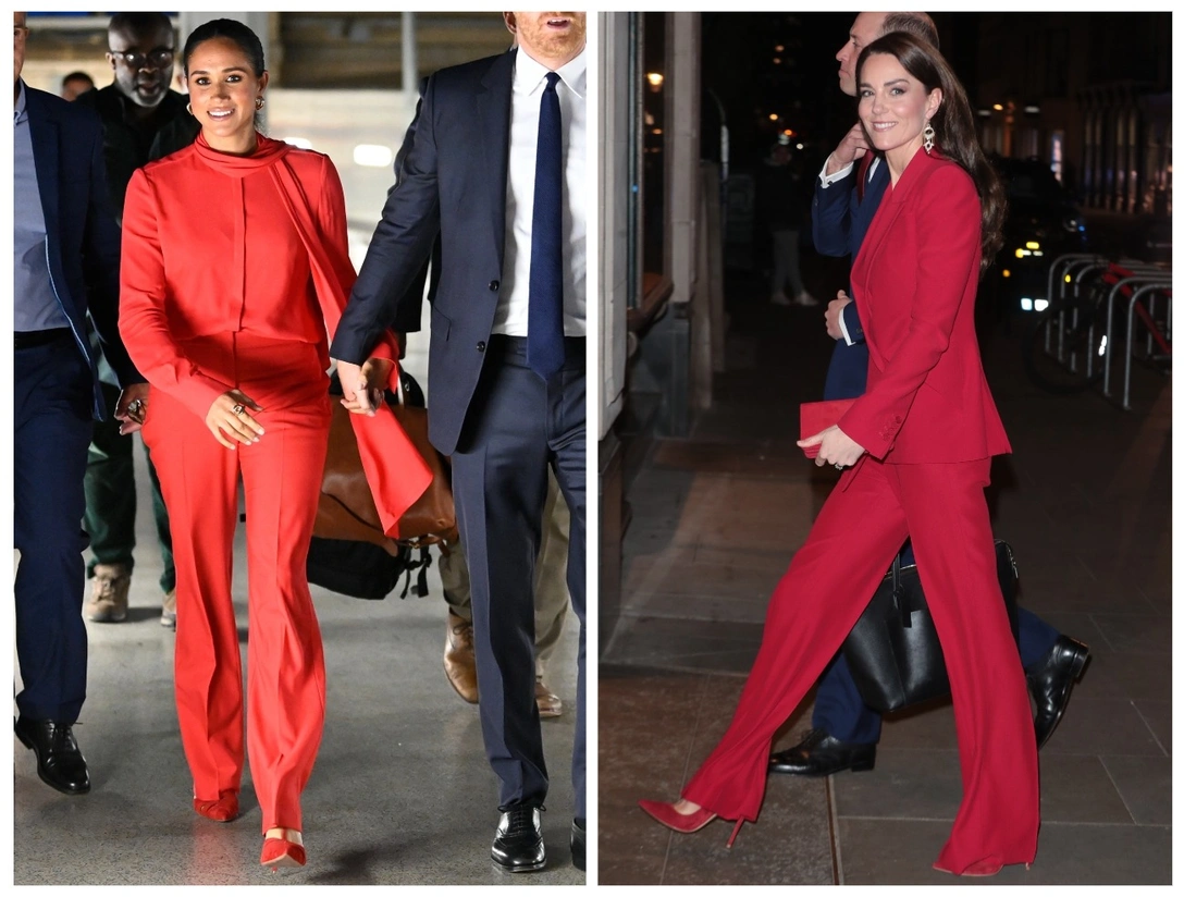 Королевские поклонники высоко оценили образ Ее Высочества. Однако многие увидели за ним скрытые смыслы, предположив, что алый брючный костюм — своеобразный укол Кейт в адрес Меган. Герцогиня Сассекская считается главным адептом бизнес-стиля в гардеробе, и не так давно она появилась на одном из вечерних мероприятий в красном ансамбле с костюмными брюками. 5 сентября 2022 года герцогиня Меган произнесла речь в Бриджуотер-холл в Манчестере — первую с тех пор, как она оставила должность действующего члена королевской семьи.