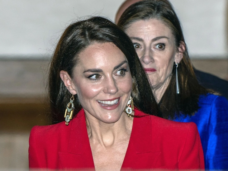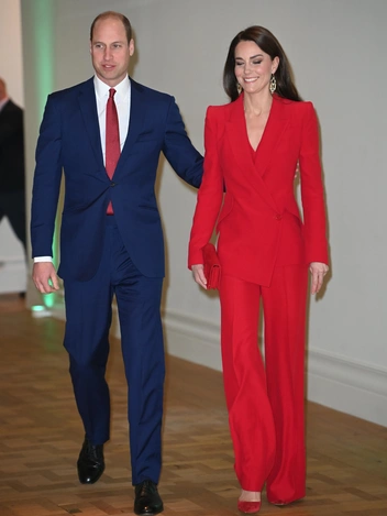 В последнее время принцесса Уэльская все чаще появляется на публике в красном. Этот цвет по-настоящему идет Кейт, и она все чаще прибегает к нему не только на праздники, как, например, во время рождественской службы 2021 года, но и во время партикулярных встреч (читайте также: Красная королева и ее свита: Кейт Миддлтон снова выиграла модную битву у Меган Маркл). На этот раз Ее Высочество продемонстрировала эффектный костюм Alexander McQueen. И многие увидели в наряде принцессы отсылку к гардеробу ее невестки.